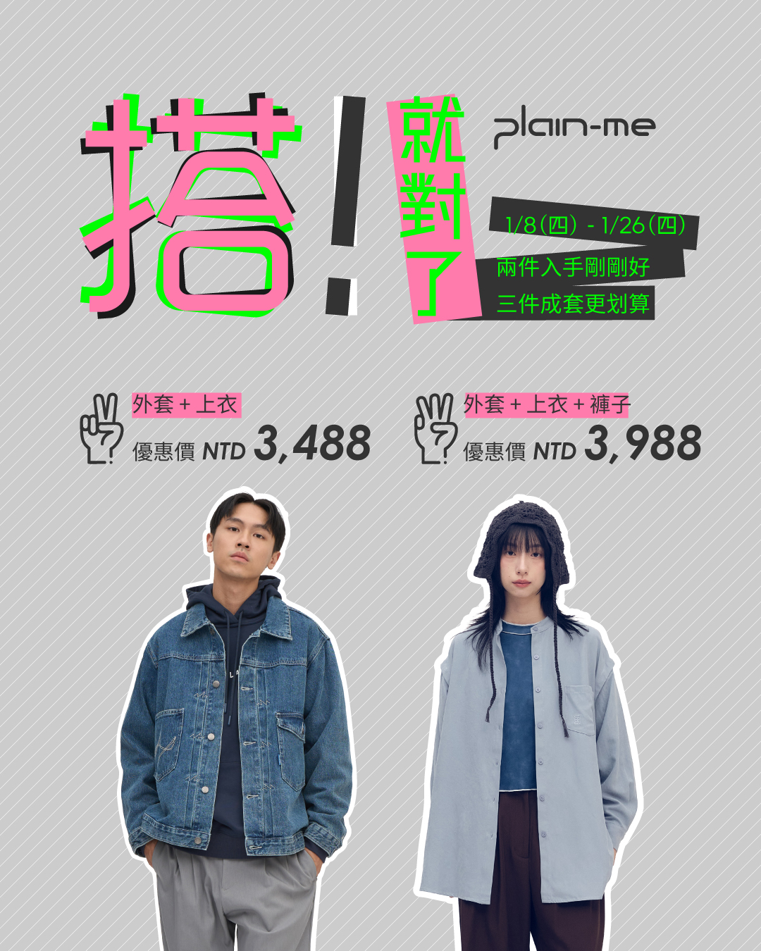 活動內容:- 外套 + 上衣 = 會員價 NTD 3,888 VIP價 NTD 3,488
