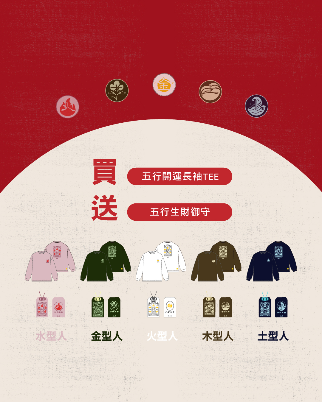 - 購買 JNP0198-261-五行開運長袖TEE 即贈送 JNP3932-261-五行生財御守