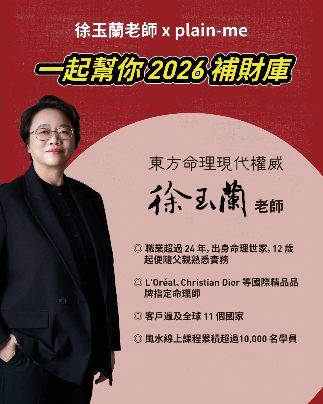 不用大費周章搬家改大門, 先從 plain-me 的「開運戰袍」開始換! 穿得帥氣,財運自然不漏氣。徐玉蘭老師 X plain-me 告訴你: 「其實最大的財庫,就是你自己。」