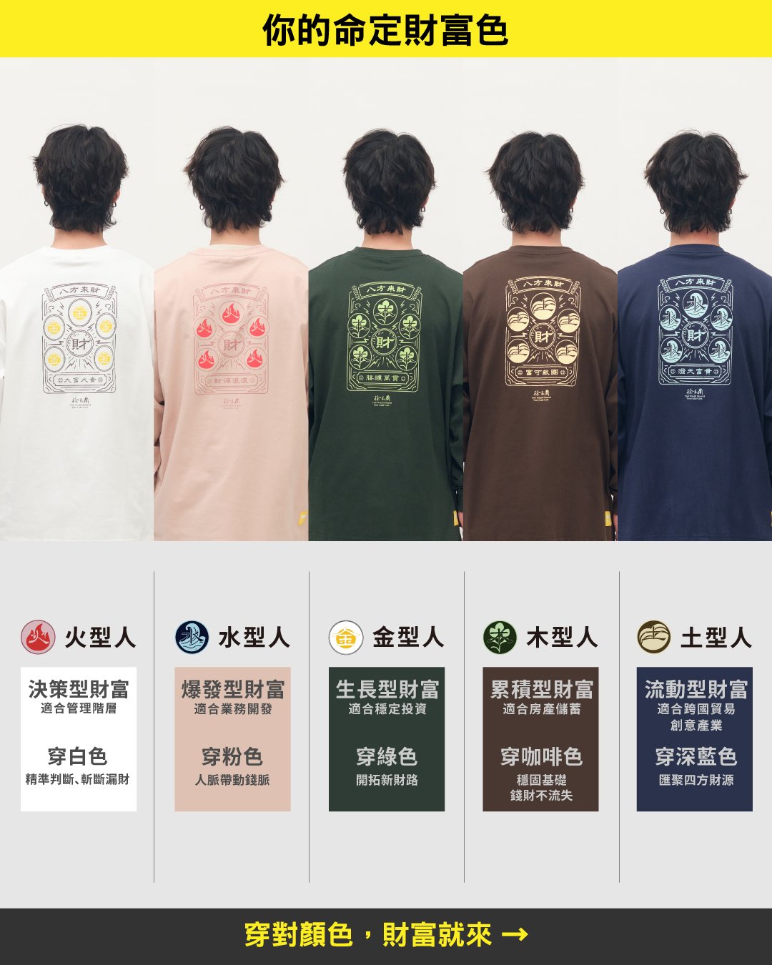 - 了解自己的五行人格與財富特質;再搭配老師推薦的穿搭色系,讓你更加好運來財!